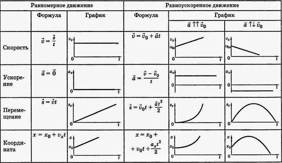 Основные формулы с пояснениями, которые помогут в решении заданий ЕГЭ по физике: движение, скорость, ускорение.