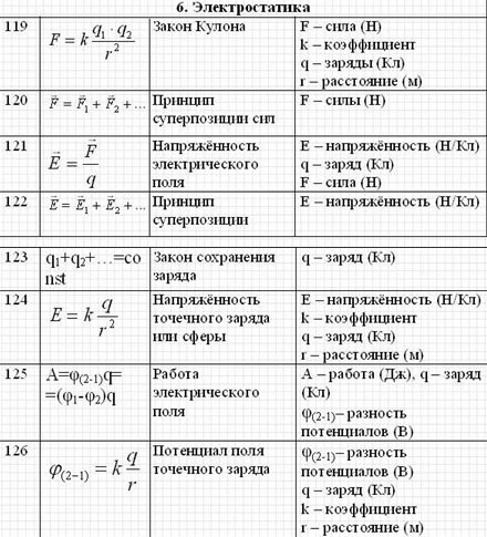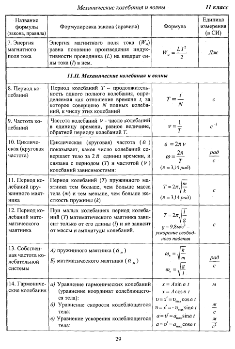 Формулы по физике 11 класс