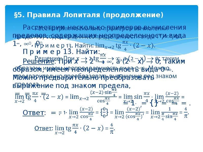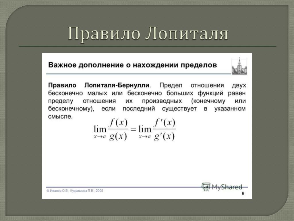 в зависимости от двух показателей (как в примере 1). Когда СЛЕДУЕТ использовать правило Лопиталя?