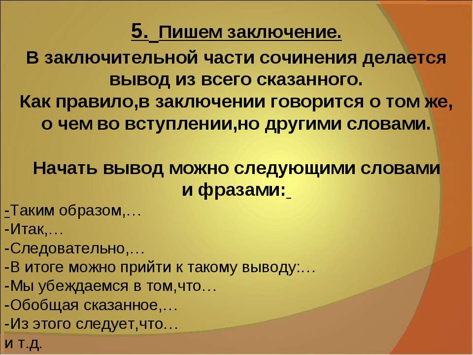 Как Написать Вывод В Сочинении 9.