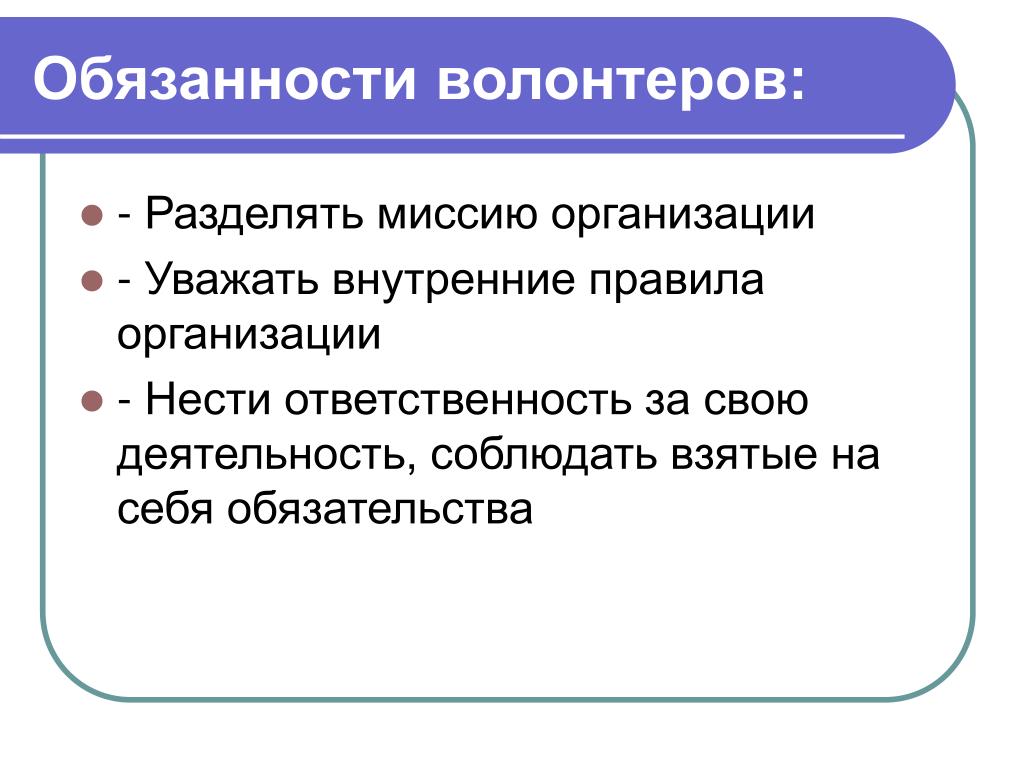- Иметь осмысленное представление главной идеи проекта в частности и волонтёрства в общем.