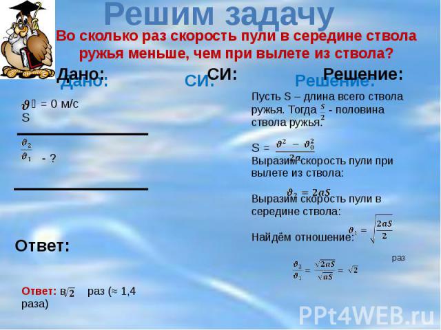 Физически возможен только положительный вариант ответа, и, таким образом, это наш правильный ответ.