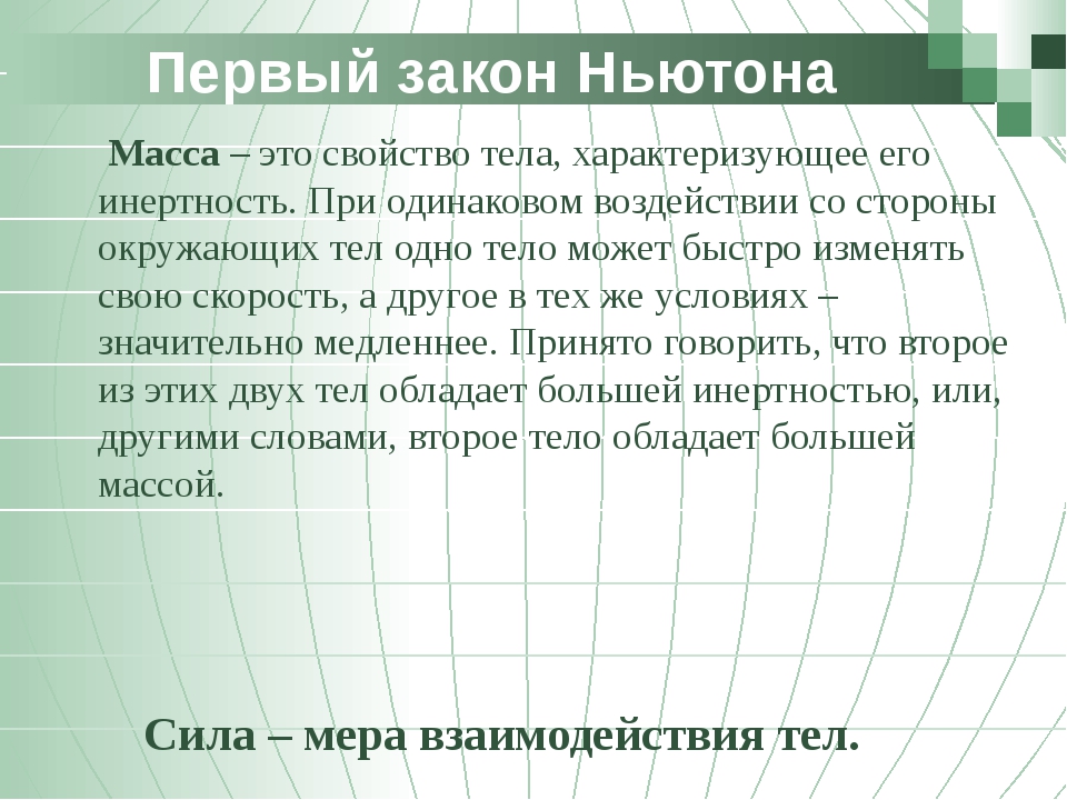 Теории по этим темам несложные, а вот решение задач часто вызывает у школьников затруднения. Дело в том, что нужно не просто знать формулы, но и уметь правильно их применять, понимать особенности разных физических процессов. Всему этому учат на курсах подготовки к ЕГЭ. Там вам расскажут, как решать 2 задание из ЕГЭ по физике. А если вы хотите понять основы этой темы, читайте нашу статью.Первый закон Ньютона