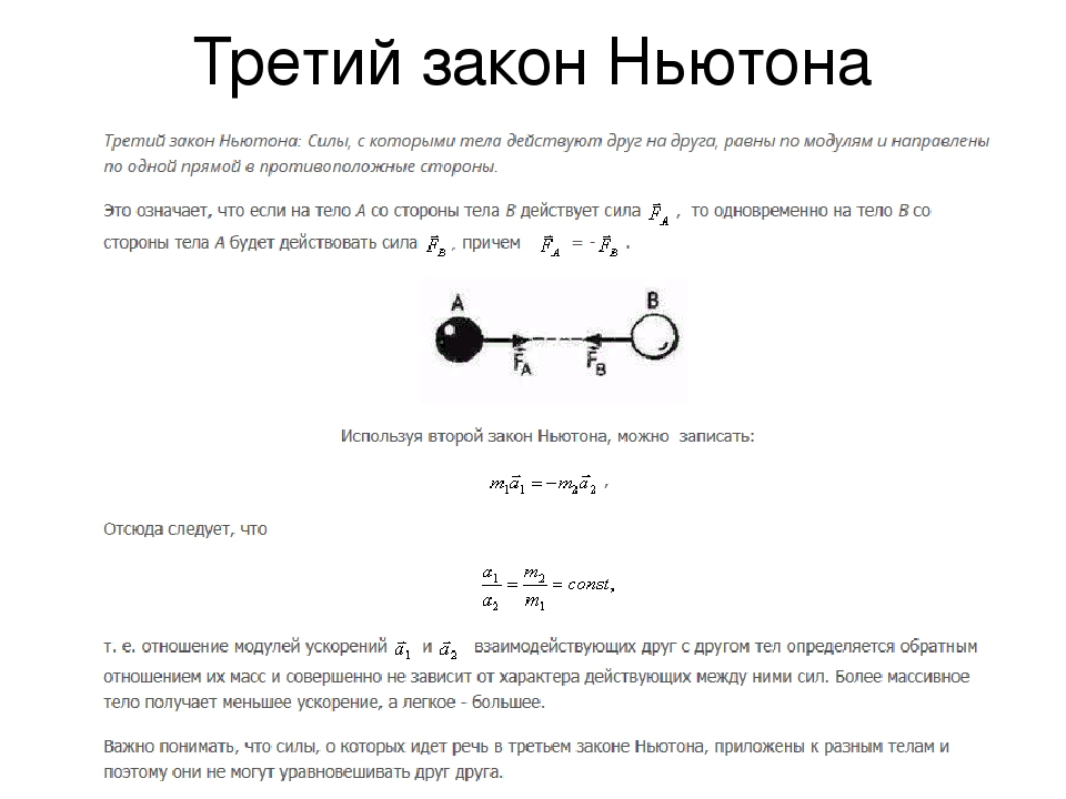 Третий закон Ньютона гласит, что на каждое действие есть равная и противоположная реакция.
