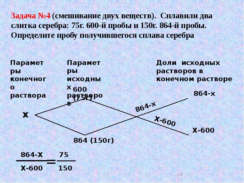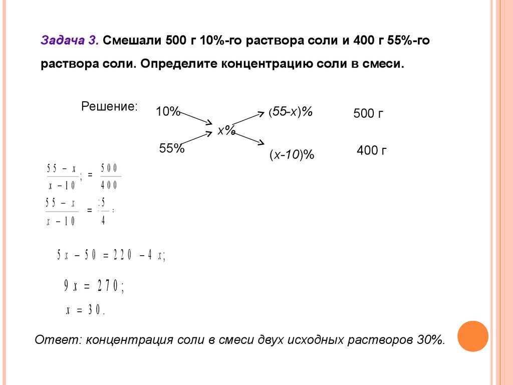Задача № 1 Лимонная кислота содержится не только в лимонах, но также в незрелых яблоках, вишнях, ягодах смородины. Лимонная кислота часто используется в кулинарии и в домашнем хозяйстве (например, для выведения ржавых пятен с ткани). Определите, какая масса 10% и 70% раствора лимонной кислоты потребуется для приготовления 100 г 20% раствора?