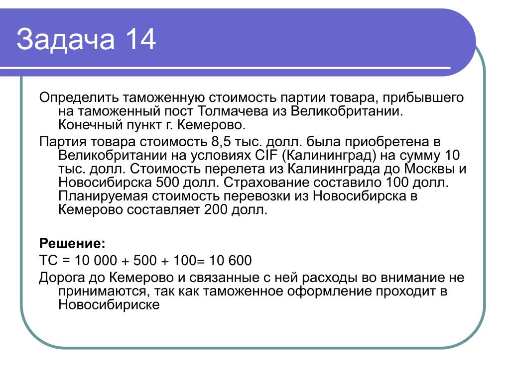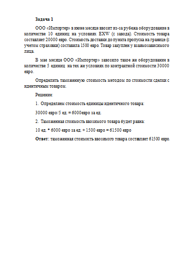 Решение задач по таможенному праву