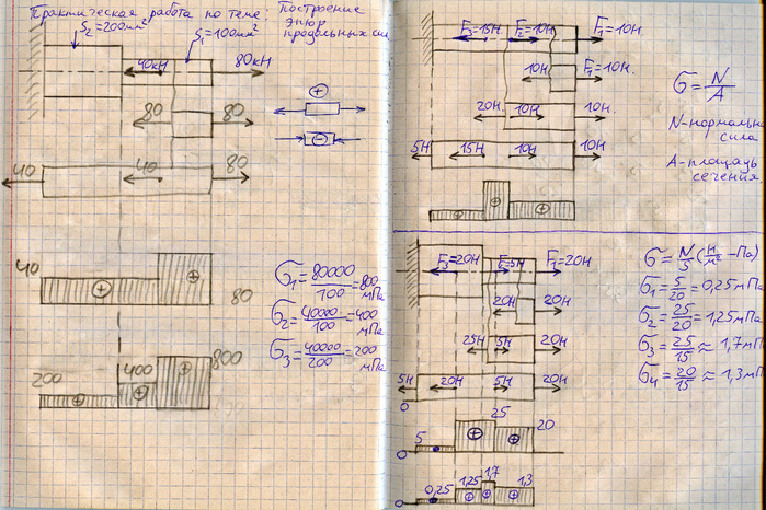 На основании вычислений строим эпюру напряжений τ на каждом из участков.