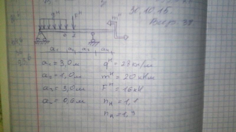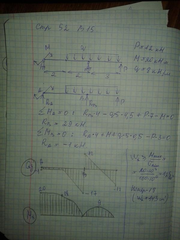 τmax=Mk2/Wp2=-2.1×103/(5.5×10-5)=-38×106 Па=-38 МПа
