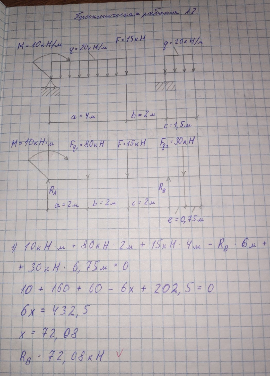 Мк4=Мк3+Т1=-3.1+1.9=-1.2 кН·м.