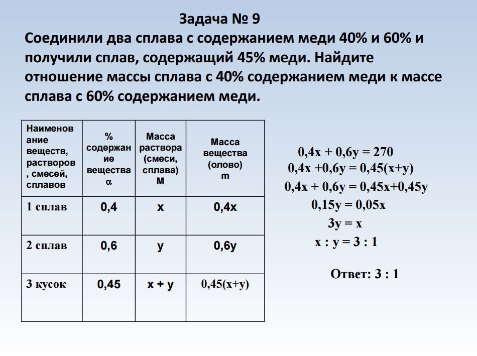 | смесь | 10 | 0,15 | 0,15(10) = 1,5 |