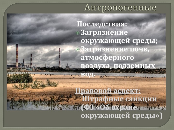 - Антропогенное загрязнение – это загрязнение природы, связанное с деятельностью человека.