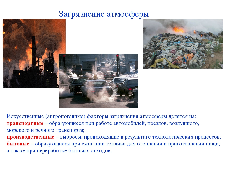 Загрязнение атмосферы происходит, в основном, в результате выброса химических веществ в воздух. Именно загрязненную атмосферы мы обычно ощущаем.
