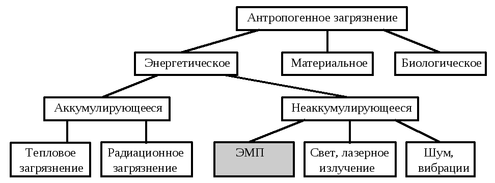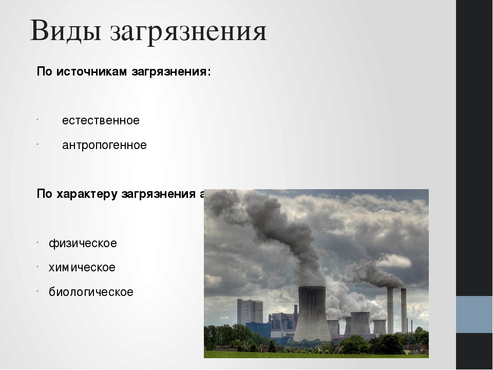 Антропогенное загрязнение принято делить на три вида: