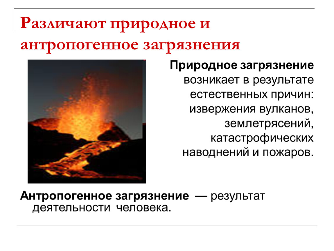 - Естественное загрязнение – это, грубо говоря, когда природа загрязняет сама себя