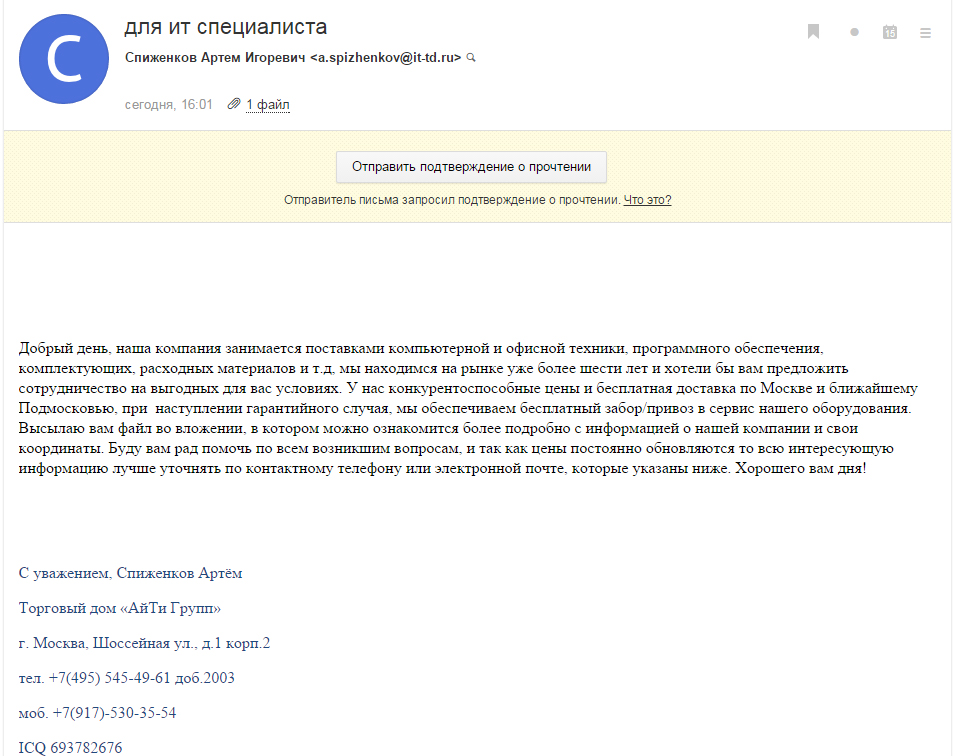 Подпись должна быть информативна и минималистична. Что уж точно не нужно в неё включать — логотип компании и почтовый адрес. Иногда в подписях встречаются тексты о конфиденциальности переписки и просьбы не распечатывать письма, чтобы не портить экологию — это клиника.