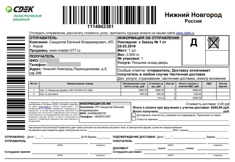В качестве доменного имени может использоваться как настоящий домен компании, так и другие домены, не связанные с компаниями служб доставки.