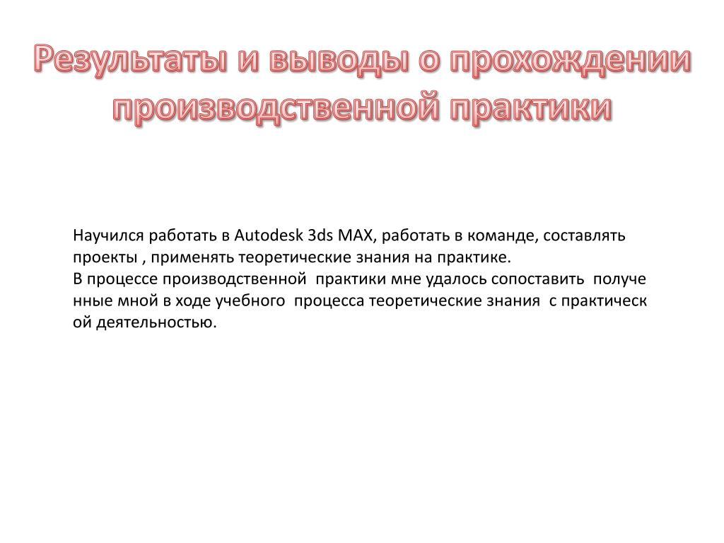 «В результате прохождения учебной практики я познакомился со своей специальностью ближе, приобрел некоторые практические навыки.