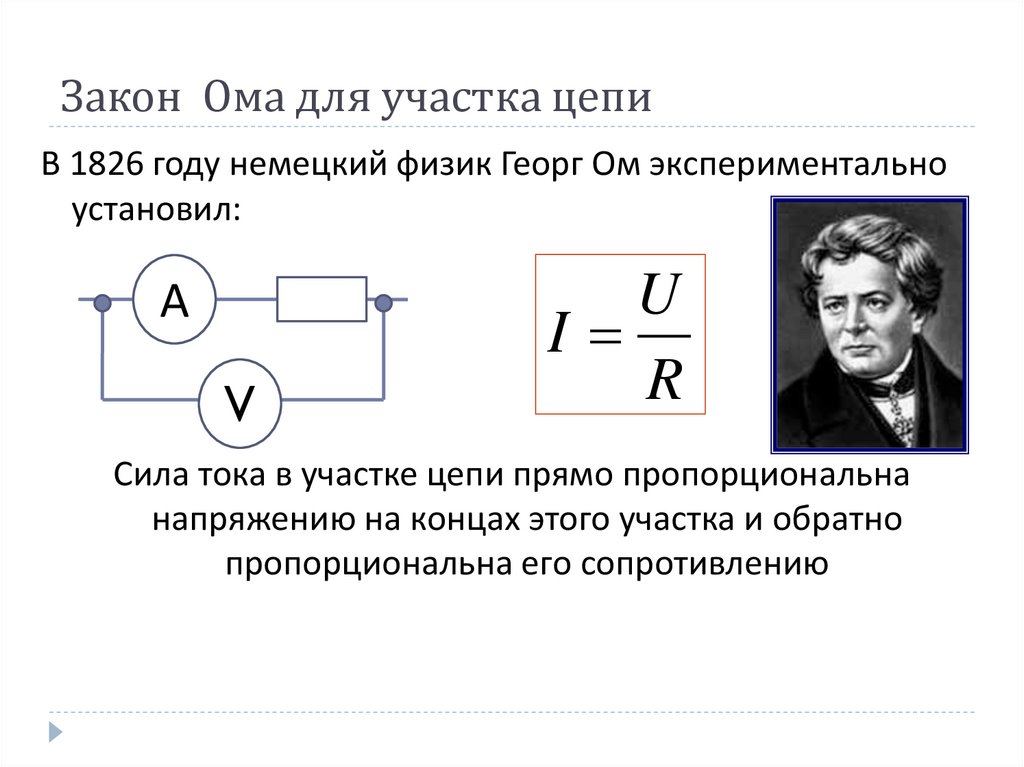 Π‘ΡΠΎΡΠΌΡΠ»ΠΈΡΡΠ΅ΠΌ Π·Π°ΠΊΠΎΠ½ ΠΠΌΠ° Π΄Π»Ρ Π½Π΅ΠΎΠ΄Π½ΠΎΡΠΎΠ΄Π½ΠΎΠ³ΠΎ ΡΡΠ°ΡΡΠΊΠ° ΡΠ΅ΠΏΠΈ – Π‘ΠΈΠ»Π° ΡΠΎΠΊΠ° ΠΏΡΡΠΌΠΎ ΠΏΡΠΎΠΏΠΎΡΡΠΈΠΎΠ½Π°Π»ΡΠ½Π° Π½Π°ΠΏΡΡΠΆΠ΅Π½ΠΈΡ Π½Π° ΡΡΠΎΠΌ ΡΡΠ°ΡΡΠΊΠ΅ ΠΈ ΠΎΠ±ΡΠ°ΡΠ½ΠΎ ΠΏΡΠΎΠΏΠΎΡΡΠΈΠΎΠ½Π°Π»ΡΠ½Π° Π΅Π³ΠΎ ΠΏΠΎΠ»Π½ΠΎΠΌΡ ΡΠΎΠΏΡΠΎΡΠΈΠ²Π»Π΅Π½ΠΈΡ:
