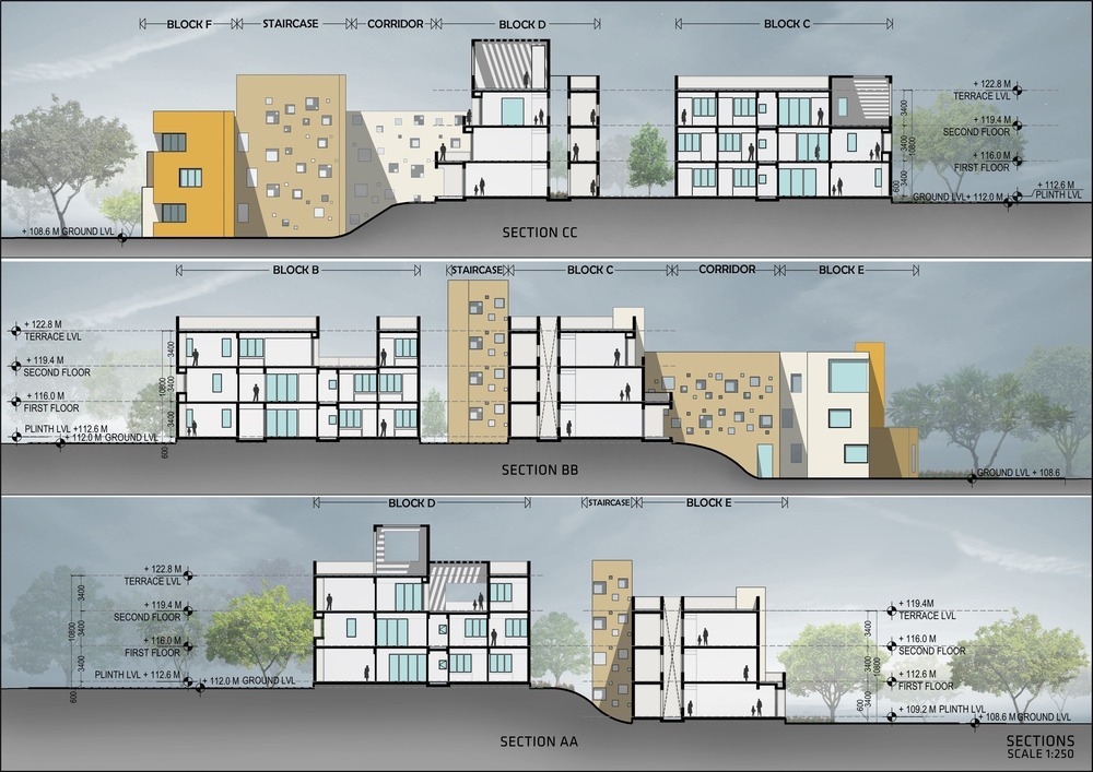 Более низкие дома должны находится в центре города с точки зрения архитектуры. Ближе к окраинам этажность увеличивается. Кроме того, среднеэтажные здания, прилегающие к кварталу с малоэтажным строительством, размещают под углом 45 градусов. Это делают для минимизации затенения со стороны более высоких зданий. В результате городская застройка начинает напоминать террасу, что выглядит довольно красиво.