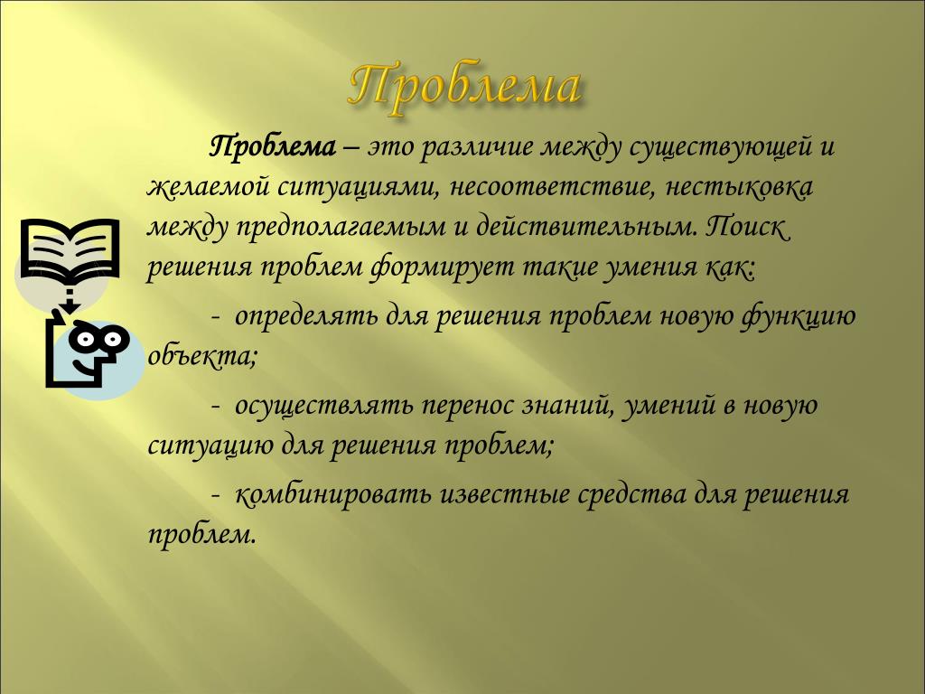 “От проблемы к цели». Ситуация и проблема. Описание ситуации. Основы проектной деятельности
