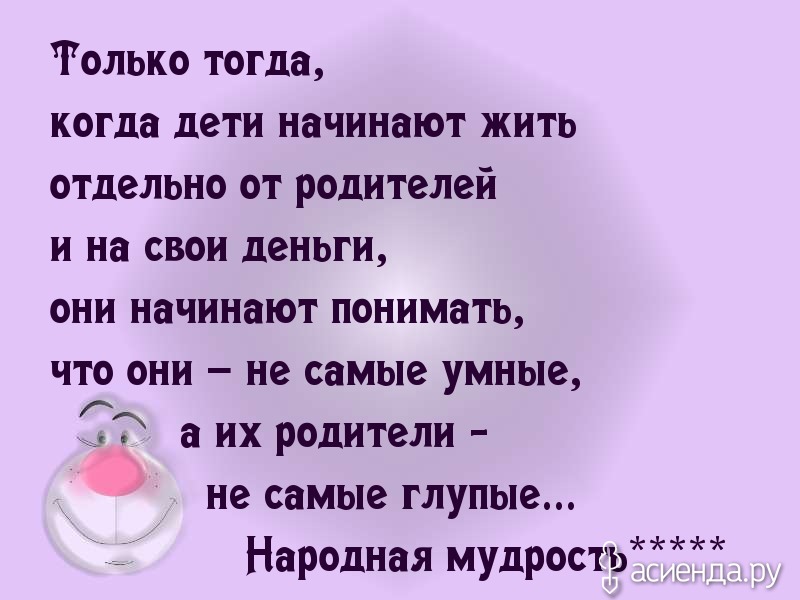 Пусть вы будете ошибаться, «набивать шишки», голодать или жить не в самых лучших условиях. Зато будете существовать не за чьей-то спиной и полноценно проживать свою жизнь! Вы получите свой жизненный опыт и станете сильной личностью. Этот путь даст возможность вашим маме или папе обратить внимание на себя или супруга. Да, скорее всего, этот процесс для них будет болезненным, но это шанс сделать «работу над ошибками». Начать жить своей жизнью, получить истинную радость от неё и от жизни счастливого и самостоятельного сына или дочери».