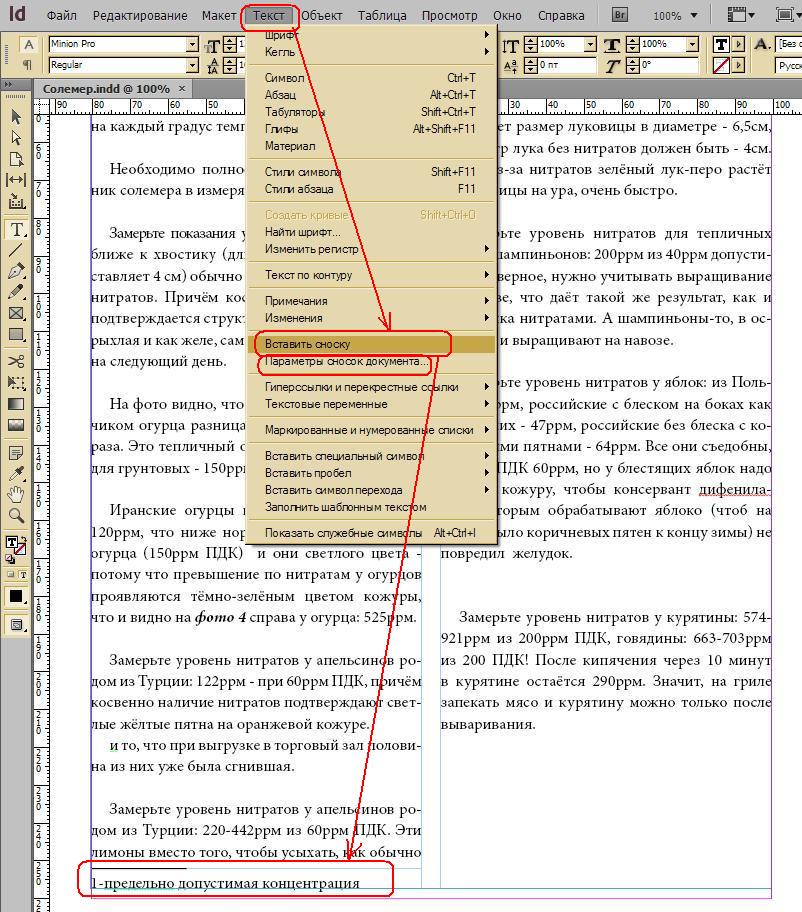 - При редактировании раздела, где использованы сноски, у которых задан параметр