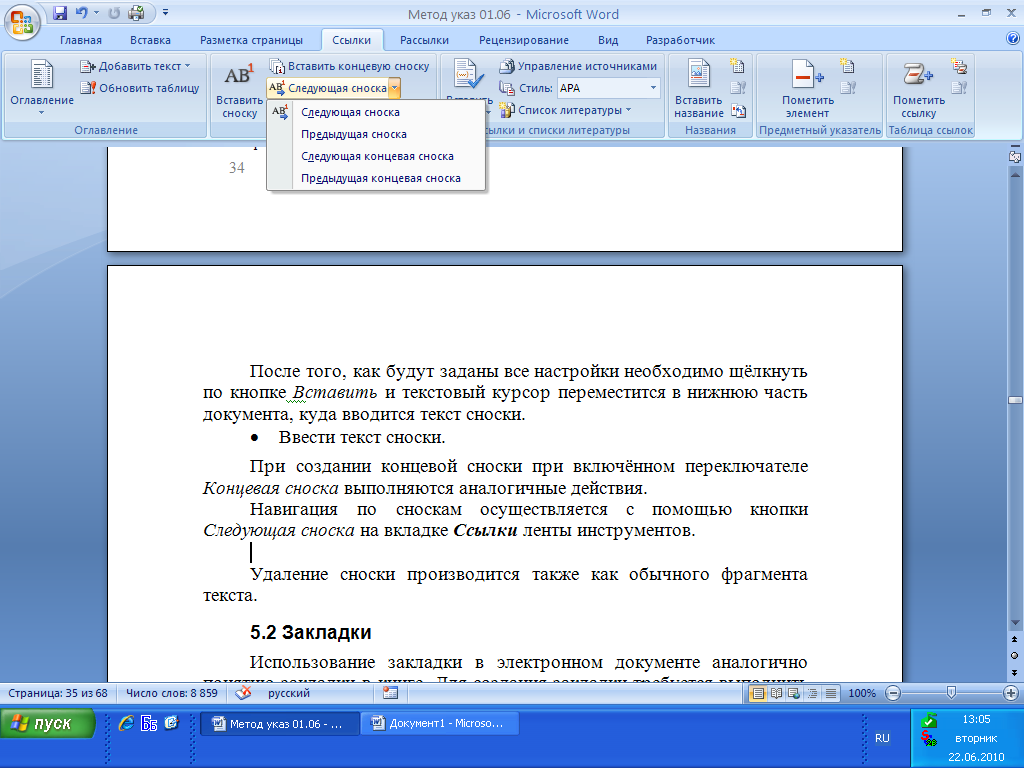 При этом на место самого тега будет вставлен знак сноски в виде её порядкового номера. При нажатии кнопки мыши на знаке сноски происходит перемещение к тексту сноски. При нажатии кнопки на знаке ↑ перед текстом сноски происходит перемещение к знаку сноски в основном тексте.