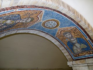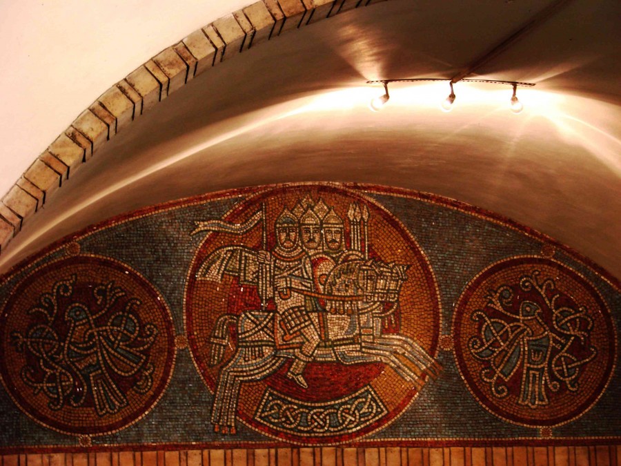 С противоположной стороны станции на одной из мозаик изображен Георгий Победоносец, символизирующий Москву.