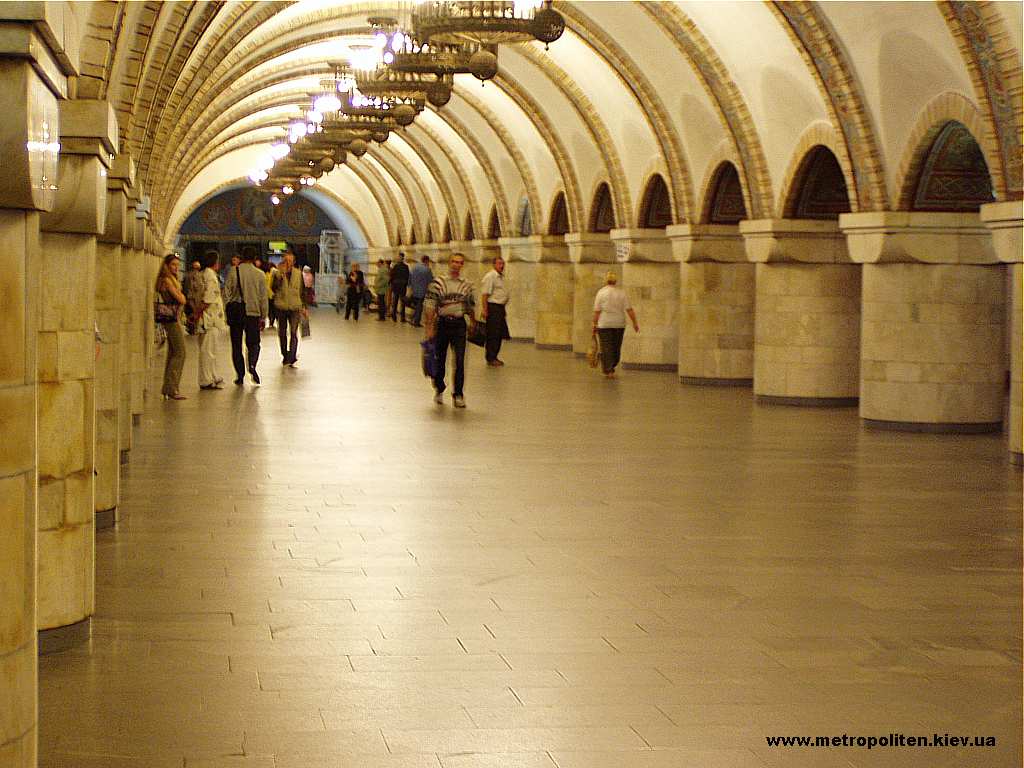 Эта станция уникальна тем, что ее столбы украшены расписными керамическими памятниками с украинскими мотивами. Станция названа в честь большого проспекта наверху, самого известного и красивого проспекта Киева.Станция Крещатик находится на красной ветке.