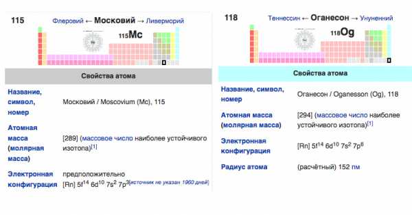 Новые элементы таблицы Менделеева — Московий и Оганессон