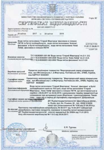 - Добыча воды только в экологически чистых курортных регионах Украины, таких как Моршин, Миргород и Голая Пристань.