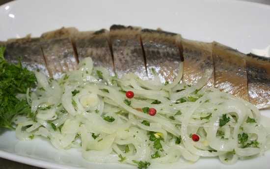 Немцы едят соленую сельдь с сырым луком.