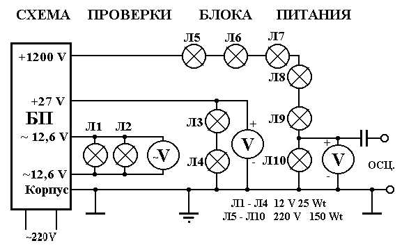 1) определяют источники электропитания, род тока, величину напряжения и т. п. Если источников несколько либо использовано несколько напряжений, то уясняют, чем это вызвано,