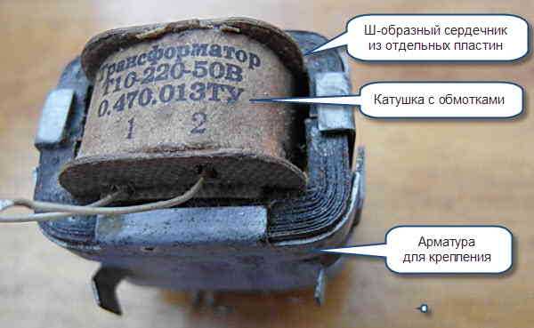 ΠΠΈΠ·ΠΊΠΎΡΠ°ΡΡΠΎΡΠ½ΡΠΉ ΡΡΠ°Π½ΡΡΠΎΡΠΌΠ°ΡΠΎΡ ΡΠΎΠ΄Π΅ΡΠΆΠΈΡ Π² ΡΠ΅Π±Π΅ ΡΠ΅ΡΠ΄Π΅ΡΠ½ΠΈΠΊ ΠΈΠ· ΡΠΏΠ»Π°Π²Π° Π½Π° ΠΎΡΠ½ΠΎΠ²Π΅ ΠΆΠ΅Π»Π΅Π·Π° ΠΈ ΡΠ°Π·ΠΌΠ΅ΡΠ΅Π½Π½ΡΠ΅ Π½Π° Π½Π΅ΠΌ ΠΎΠ±ΠΌΠΎΡΠΊΠΈ ΠΈΠ· ΠΏΡΠΎΠ²ΠΎΠ΄Π°. Π ΡΠΏΡΠΎΡΠ΅Π½Π½ΠΎΠΌ Π²ΠΈΠ΄Π΅ ΡΡΠ°Π½ΡΡΠΎΡΠΌΠ°ΡΠΎΡ ΡΠΎΠ΄Π΅ΡΠΆΠΈΡ Π΄Π²Π΅ ΠΎΠ±ΠΌΠΎΡΠΊΠΈ β ΠΏΠ΅ΡΠ²ΠΈΡΠ½ΡΡ ΠΈ Π²ΡΠΎΡΠΈΡΠ½ΡΡ. ΠΠ½ΠΈ ΠΈΠ·ΠΎΠ»ΠΈΡΠΎΠ²Π°Π½Ρ Π΄ΡΡΠ³ ΠΎΡ Π΄ΡΡΠ³Π° ΠΈ Π½Π΅ ΠΈΠΌΠ΅ΡΡ ΡΠ»Π΅ΠΊΡΡΠΈΡΠ΅ΡΠΊΠΎΠ³ΠΎ ΠΊΠΎΠ½ΡΠ°ΠΊΡΠ°.
