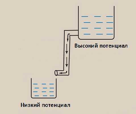 Во-вторых, необходима разность потенциалов. Ведь если с двух концов водопроводной трубы будет одинаковый напор, каким бы сильным он не был — течения внутри не будет. То же самое и с электричеством. Разность потенциалов называют напряжением.
