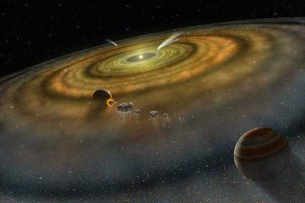 О механизме образования планет в Солнечной системе также нет общепризнанных заключений. Солнечная система, по оценкам, образовалась примерно 5 млрд. лет назад, причем Солнце – звезда второго (или еще более позднего) поколения. Таким образом, Солнечная система возникла на продуктах жизнедеятельности звезд предыдущих поколений, скапливавшихся в газово-пылевых облаках. Это обстоятельство дает основание назвать Солнечную систему малой частью звездной пыли. О происхождении Солнечной системы и ее исторической эволюции наука знает меньше, чем необходимо для построения теории планетообразования. От первых научных гипотез, выдвинутых примерно 250 лет назад, до наших дней было предложено большое число различных моделей происхождения и развития Солнечной системы, но ни одна из них не удостоилась перевода в ранг общепризнанной теории. Большинство из выдвигавшихся ранее гипотез сегодня представляет лишь исторический интерес.