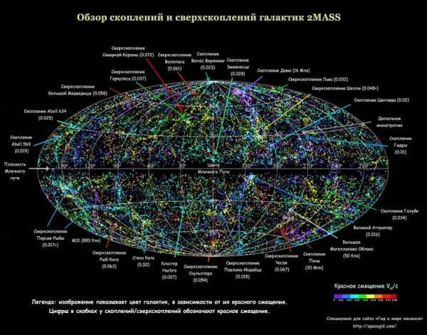 Изучите схему структуры Вселенной: масштабы пространства, карта Вселенной, сверхскопления, скопления, группы галактик, галактики, звезды, Великая Стена Слоуна.