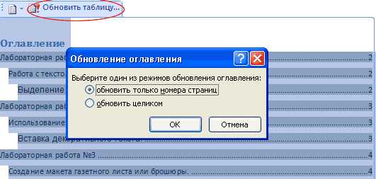 - Мы можем как обновить оглавление полностью, если где-то была допущена ошибка, так и обновить только номера страниц. Выбираем необходимый пункт.