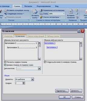 2. Вставка автособираемого оглавления в начало или в конец документа