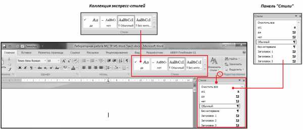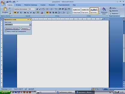 Для работы со стилями можно использовать элементы группы Стили вкладки Главная и область задач Стили (рисунок 1), которая открывается кнопкой группы.