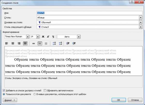 Когда указаны все настройки и форматирование, следует нажать ОК. Теперь созданный стиль можно использовать. Кроме описанного выше способа создания стиля имеются и другие альтернативные способы, основанные на тексте с существующим форматированием.