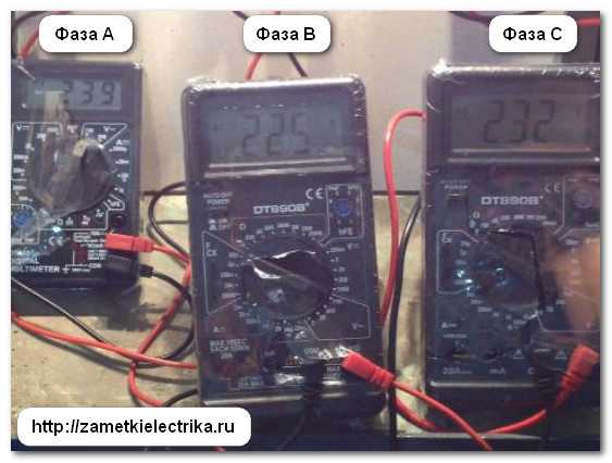 В фазе А напряжение снизится с 239 (В) до 65 (В), в фазе В — напряжение с 225 (В) увеличится до 335 (В), а в фазе С — напряжение с 232 (В) увеличится до 372 (В).