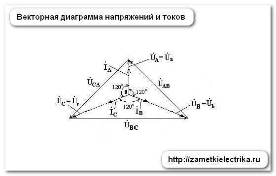 Естественно, что фазные напряжения сдвинуты относительно друг друга на 120 электрических градуса.
