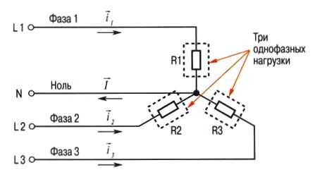 Беда в том, что все электрические коммуникации (т. е. линии электропередачи) являются трёхфазными. Рассмотрим схему «звезда», в которой появляется понятие «нулевой провод».