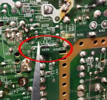 Резистор R633 (47ом) выпаиваем, и на его место устанавливаем обычный диод анодом на корпус как на изображении.