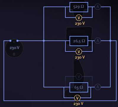 При параллельном подключении приборов на каждом приборе будет одинаковое напряжение в 220 В.
