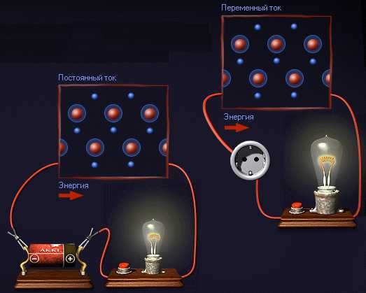 Для большинства электрических приборов не имеет значения, используется постоянный или переменный ток. В любом случае, электростанции поставляют переменный ток. При переменном токе источник напряжения регулярно меняет полярность. Напряжение, которое мы можем измерить в розетке, составляет 220 В и имеет частоту 50 Гц. Это значит, что ток меняет направление 100 раз за секунду. Электроны в переменном токе текут, постоянно меняя направление, то в одну, то в другую сторону.