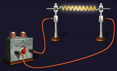 Если в цепь подключить кусок проволоки, то она скоро нагреется. Это нагревание происходит за счет движения электронов, которые, как говорят, “трутся” об атомы. Скорость и величина нагревания зависят от материала, из которого изготовлена проволока. Чем больше сопротивление материала, тем быстрее нагревается проволока.