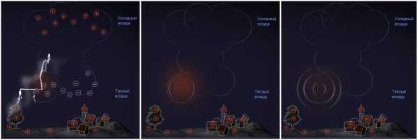 Благодаря выделению огромного количества энергии воздух вокруг молнии резко нагревается, расширяется и начинает быстро распространяться в виде волны. Эту ударную волну мы слышим как раскаты грома.
