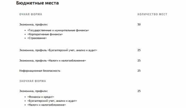 Количество бюджетных мест на очном и заочном отделениях